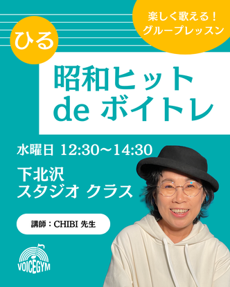このクラスでは、主に80・90年代のヒット曲を題材に、プロの現場でChibi先生が実際に行っているボイトレが学べます。年齢不問、ボイトレ未経験、初心者の方も安心して参加できるボイトレビギナー向けクラスです。Chibi先生の楽しいレッスンで伸び伸び声を出してみませんか?